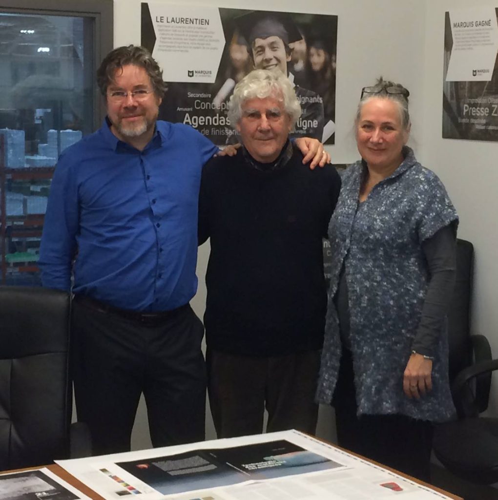 François, Claude et Sylvi Belleau chez Marquis, imprimeur du livre au Québec
